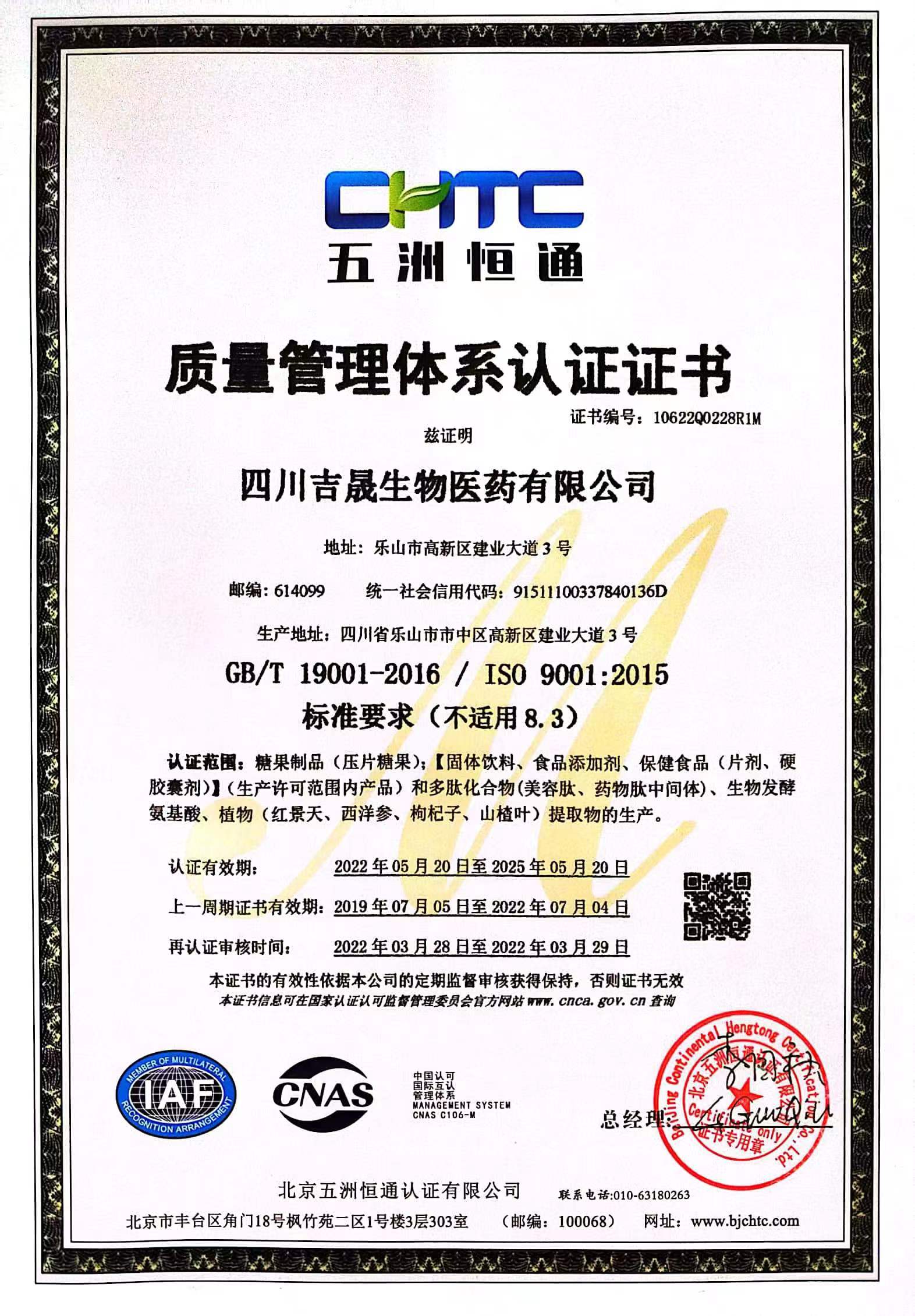四川吉晟生物醫藥有限公司成立于2015年,位于四川樂山高新技術開發區,工廠占地面積6萬多平方米,是一家集產品研發、生產、銷售為一體的國家高新技術企業,通過了ISO9001、Kosher質量認證,2022年榮獲樂山市首家“瞪羚企業”。